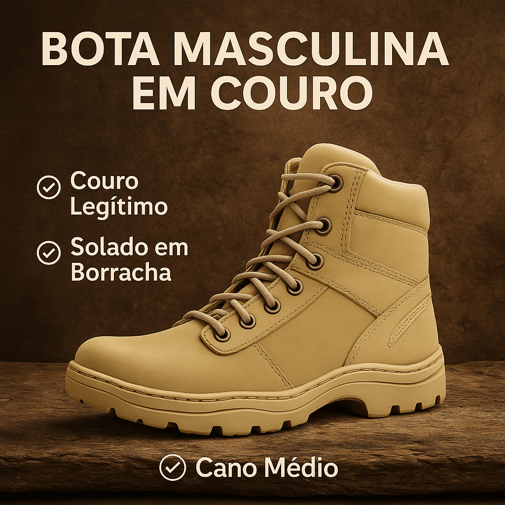 Com couro legítimo, acabamento premium e um solado que encara qualquer terreno, ela une o visual de respeito com a performance que aguenta o tranco, do asfalto ao barro, do escritório à trilha.
