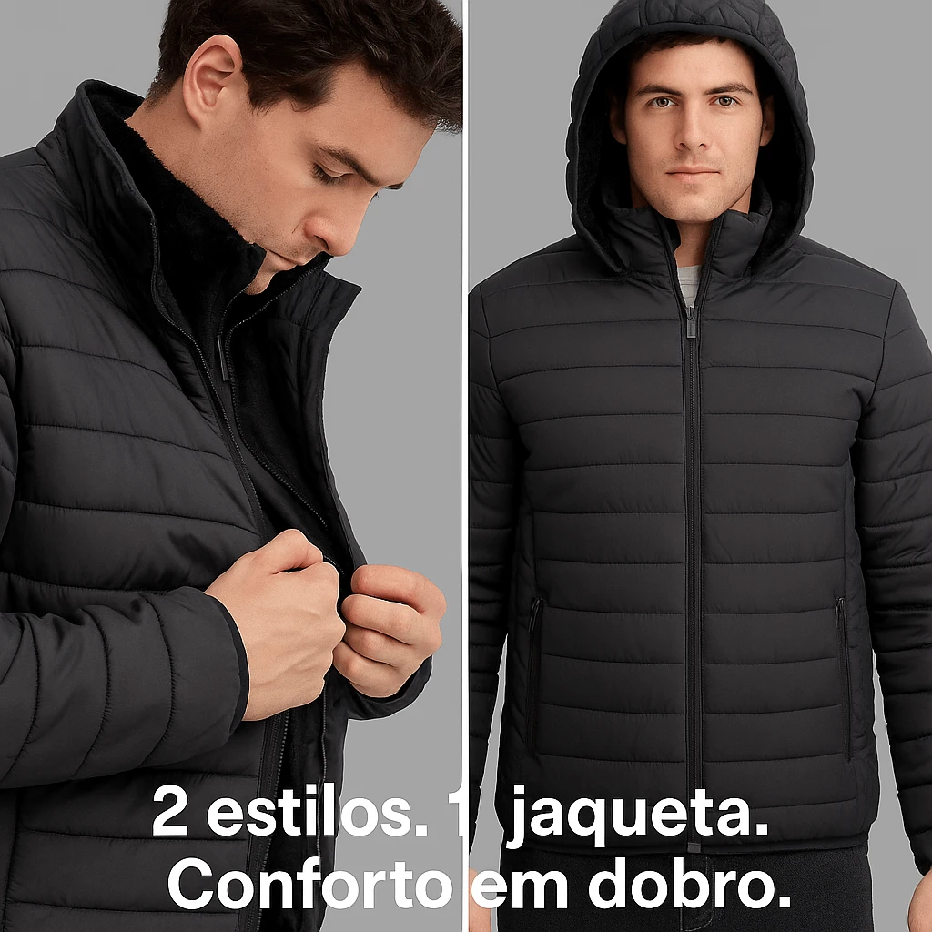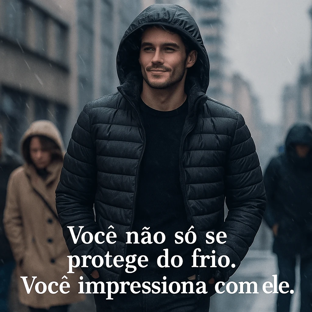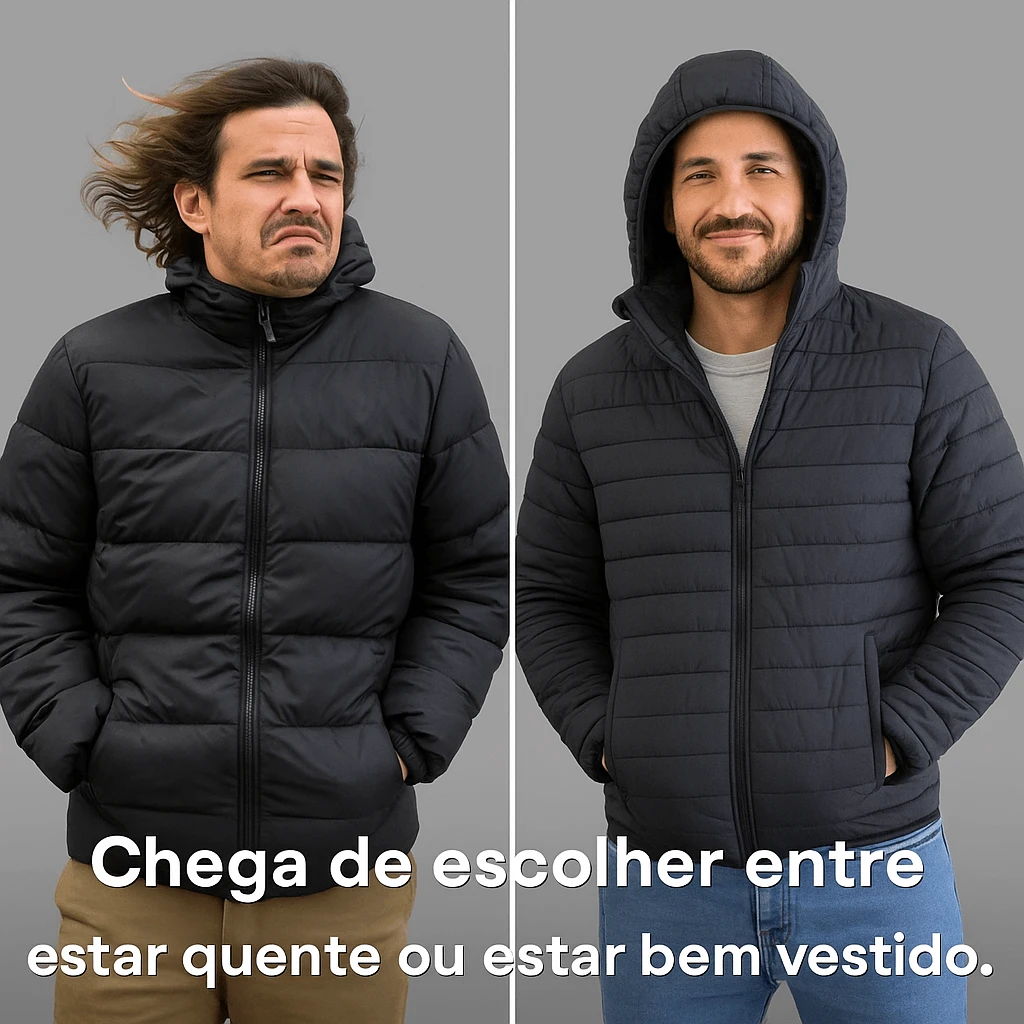 Jaquetas pesadas, volumosas ou sem estilo são comuns, mas elas te deixam travado, desconfortável ou simplesmente… com cara de que desistiu do visual.