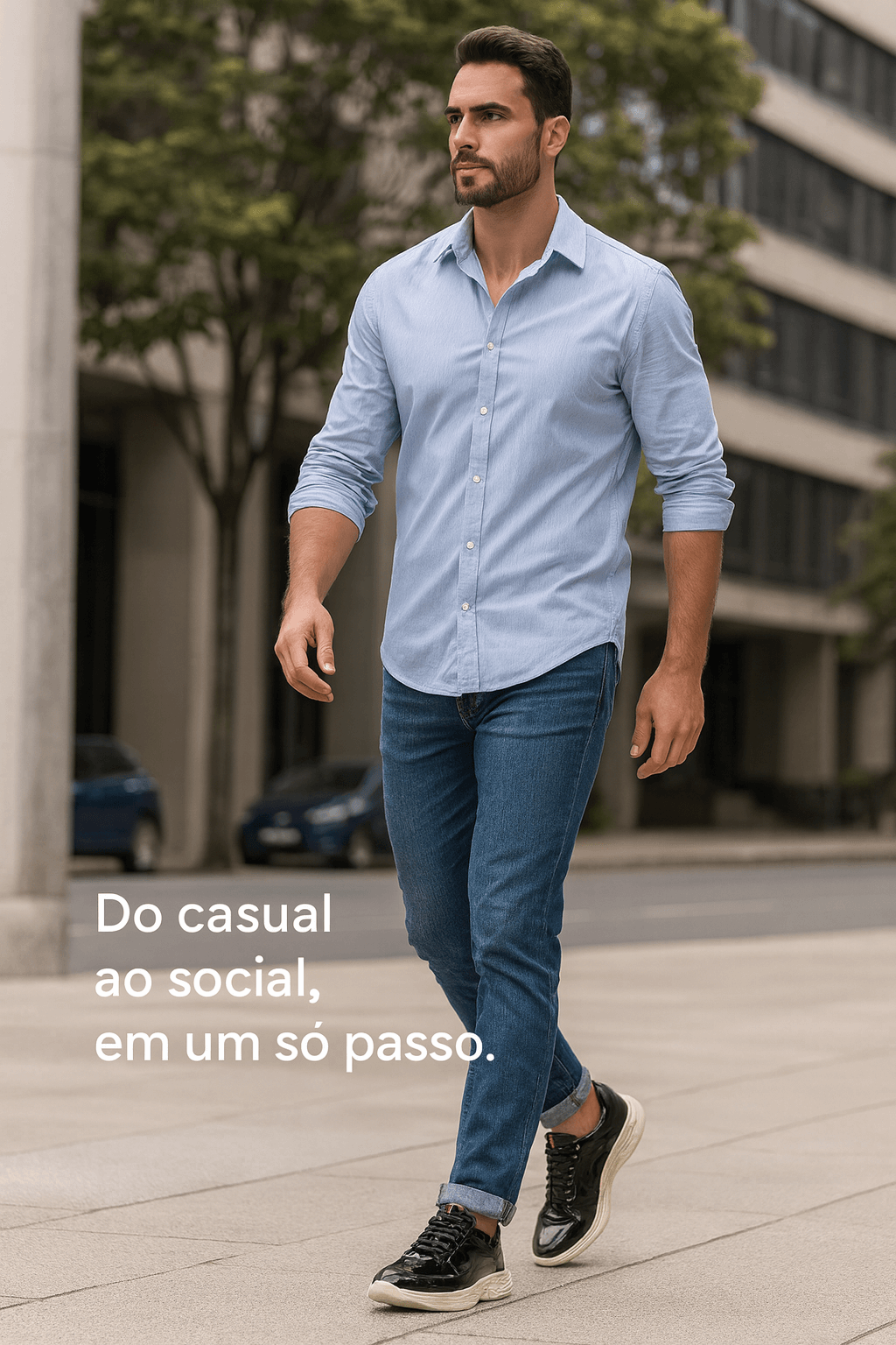 Claro! O design clean combina com jeans, bermuda e até calça de alfaiataria.